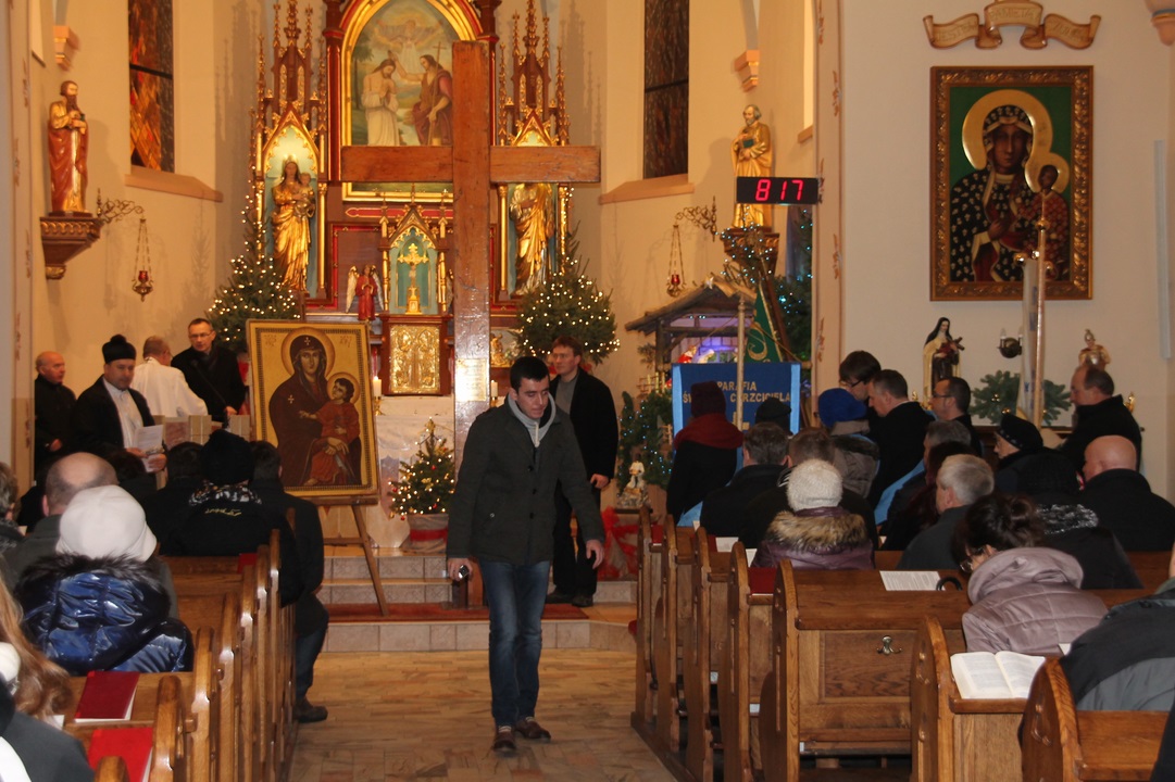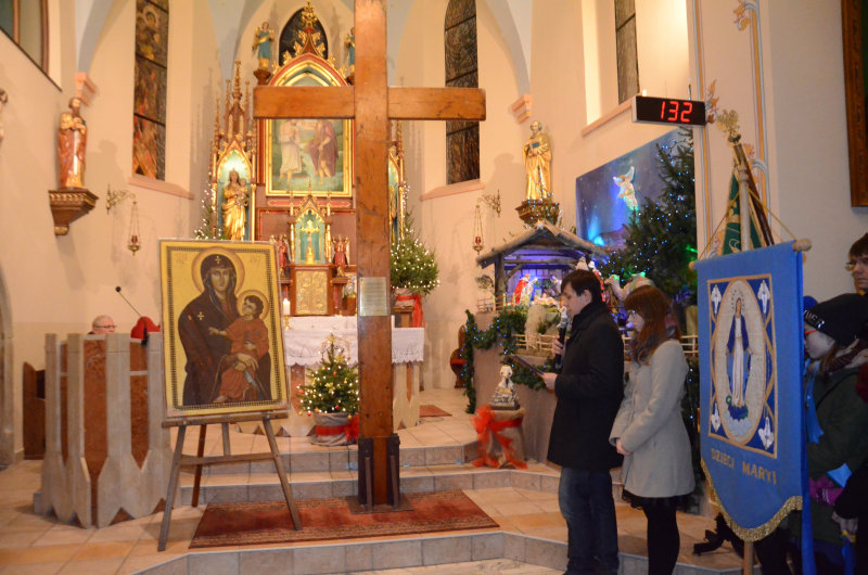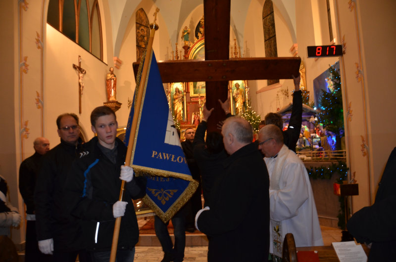 W sobotę, 10 stycznia, przeżywaliśmy w naszej parafii wyjątkowe wydarzenie. O godz. 1700 przybył do nas z Żor (w kolejnym etapie peregrynacji przez Polskę), słynny Krzyż Światowych Dni Młodzieży i Ikona Matki Bożej, które przemierzyły już wszystkie kontynenty. To ogromny zaszczyt i wielka łaska dla Pawłowic i dla naszej parafii, że dane nam będzie modlić się przy tych Świętych Symbolach spotkań młodych z całego świata. Modlitwa przy krzyżu i ikonie odbyła się w naszym kościołem (ok. 30 min.), po czym wyruszyliśmy w procesji do kościoła Podwyższenia Krzyża Świętego na adorację, która potrwała do godz. 2100. Z młodzieżą i wiernymi całego dekanatu rozważaliśmy Słowo Boże, trwalismy na modlitwie i śpiewie, a także zobaczyliśmy ciekawe filmy: „Most nadziei” i „ Peregrynacja symboli ŚDM”.