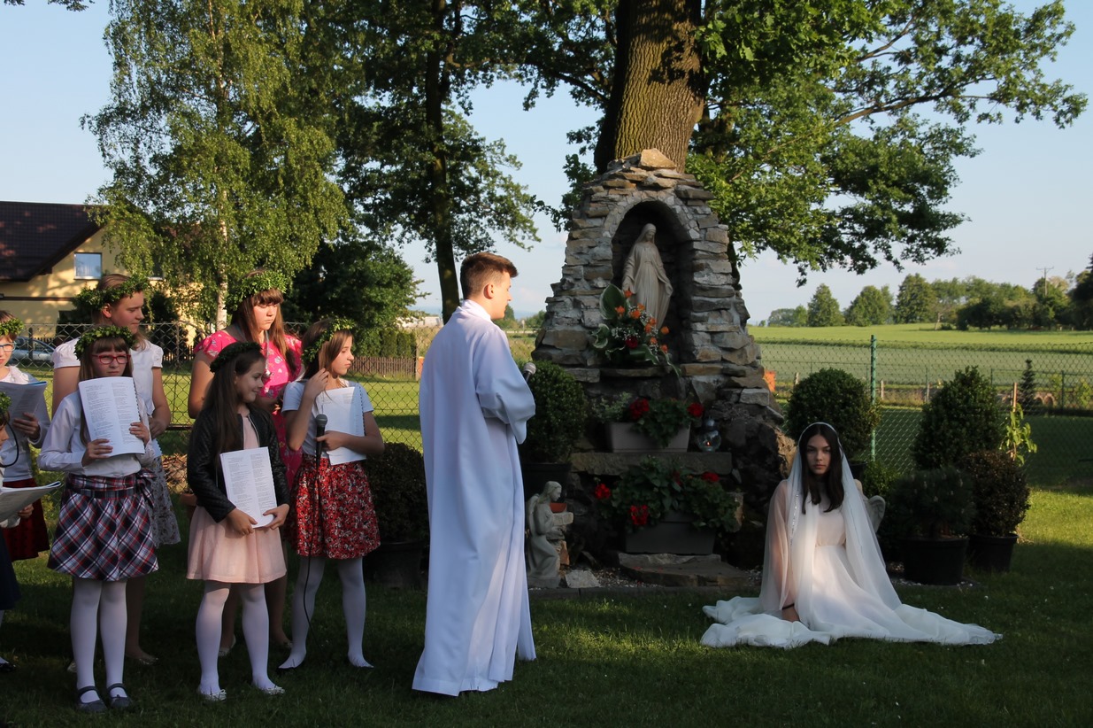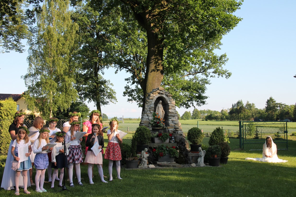 W niedzielę 20 maja 2018 r. dzieci i młodzież pod kierunkiem siostry Adriany przygotowały nabożeństwo majowe, które odbyło się przed grotą Matki Bożej. W przepięknej scenerii wiosennego ogrodu mogliśmy podziwiać piękno majowego krajobrazu oraz uczestniczyć w nabożeństwie ku czci Najświętszej Maryi Panny.
