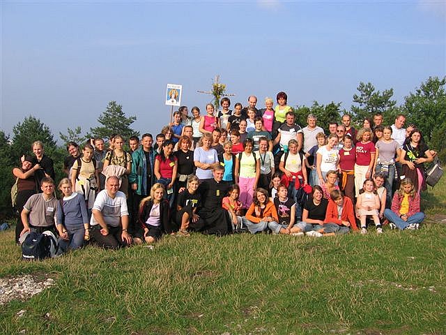 Cała grupa pielgrzymkowa na górze zborów.