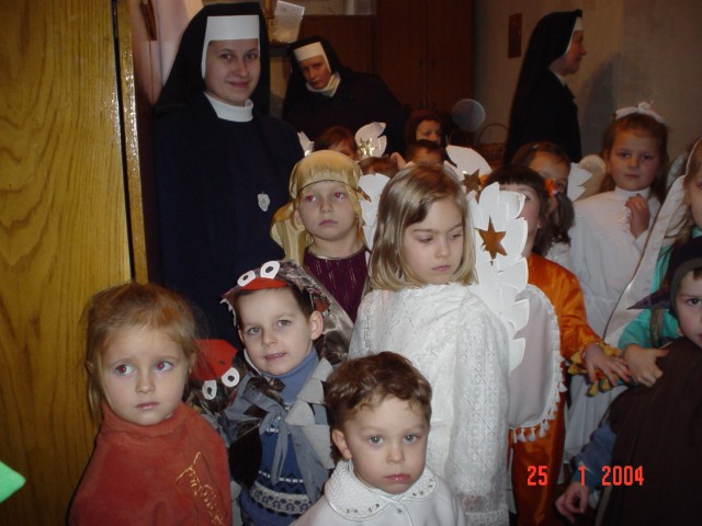 W niedzielę 25.01.2004 r. o godzinie 15.30 odbyły się w naszym kościele jasełka w wykonaniu dzieci uczęszczających do OCHRONKI SIÓSTR SŁUŻEBNICZEK