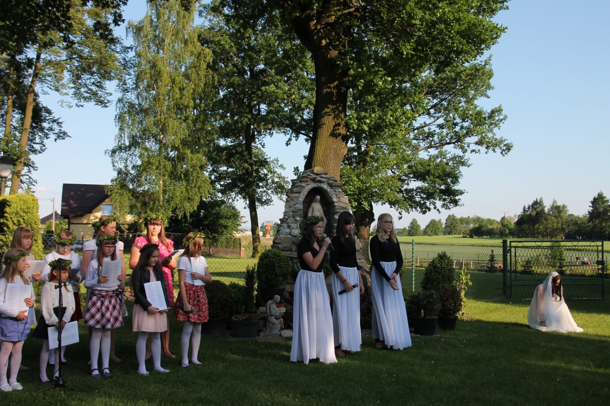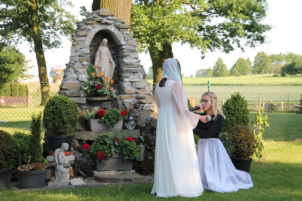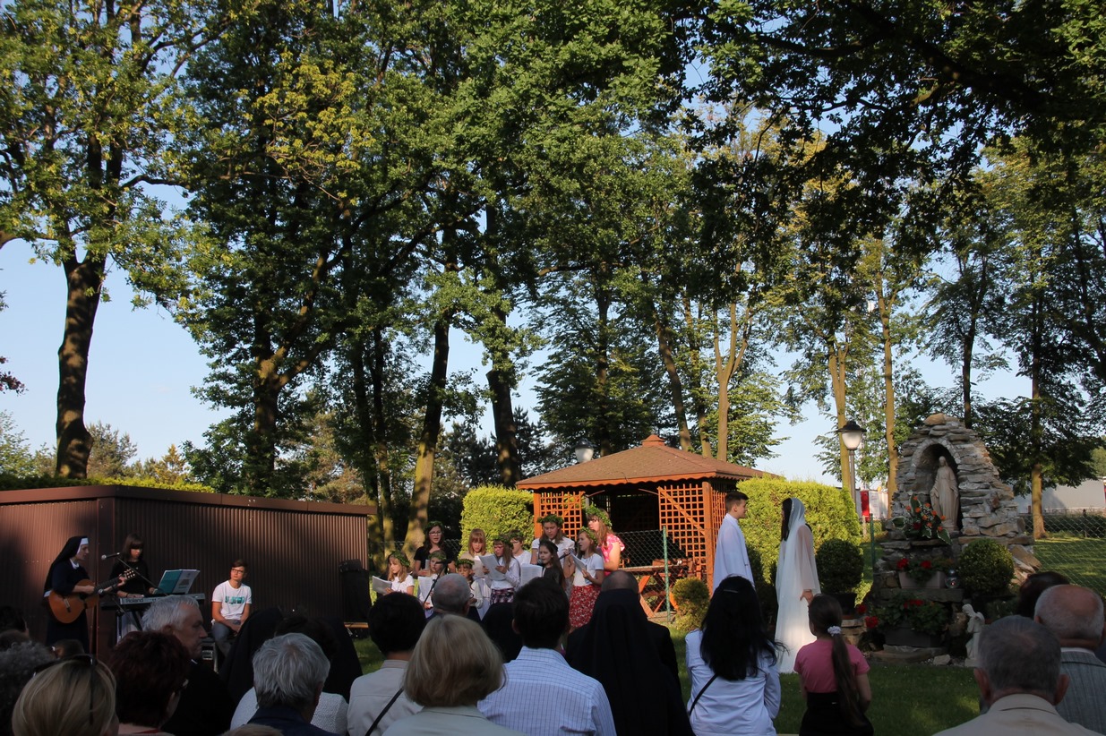 W niedzielę 20 maja 2018 r. dzieci i młodzież pod kierunkiem siostry Adriany przygotowały nabożeństwo majowe, które odbyło się przed grotą Matki Bożej. W przepięknej scenerii wiosennego ogrodu mogliśmy podziwiać piękno majowego krajobrazu oraz uczestniczyć w nabożeństwie ku czci Najświętszej Maryi Panny.